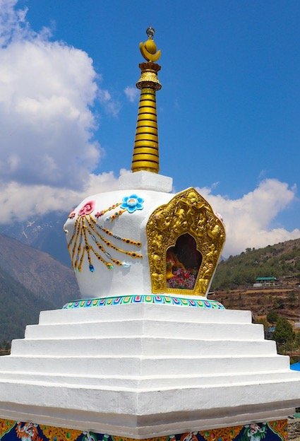 Vi inleder dagen med en kort vandring upp till Sherpa museet och statyn av Tenzing Norgay. Vid klart väder ser vi härifrån Everest för första gången. Därefter klättrar vi brant upp över Namche och når efter en dryg timme det världsberömda Everest View Hotel. Här har vi ett fantastiskt panorama i bakgrunden när vi njuter av en kopp te.