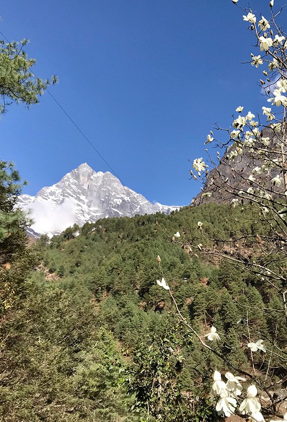 Efter fikapausen tar vi en tur via Khumjung-dalen, eller “den gröna dalen” som den har kommit att kallas för på grund av alla grönmålade tak. Vi tar en lång lunch och njuter av omgivningarna. Efter lunchen vandrar vi ner den sista biten till Kyangjuma, där vi också har en fantastisk utsikt över Ama Dablam, ansett som världens vackraste berg.